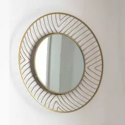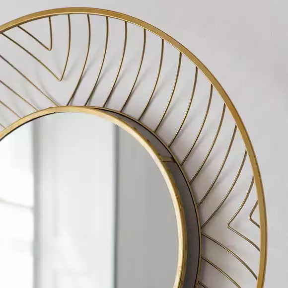 Make a statement in your home with this gorgeous Chloe Wall Mirror. Featuring a circular shape mirror with gold finish metal wire work, perfect for drawing attention to your accent wall and it equally suits both rustic and contemporary décor.