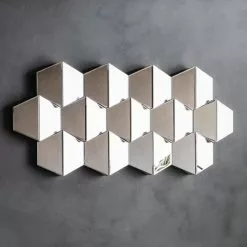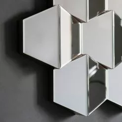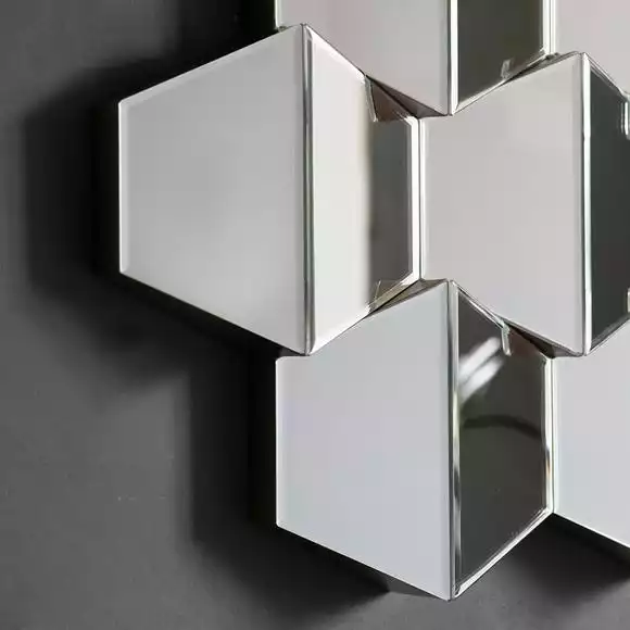 Add a gorgeous feature mirror to your home with this silver Colette Wall Mirror, designed with faceted hexagonal mirrors that beautifully reflect light across the room. This eye-catching piece will make a statement against any wall in your living space. With a hook hanging feature, this mirror can be hung horizontally or vertically.