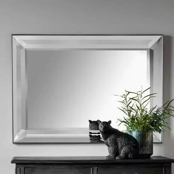 Add a beautiful rectangular shaped mirror that is perfect for any home style. The Erie Mirror features beveled glass with a silver edge for a contemporary appearance. A stunning mirror that can be hung both portrait or landscape, a fantastic way to add a modern and timeless touch to your home interior and décor.