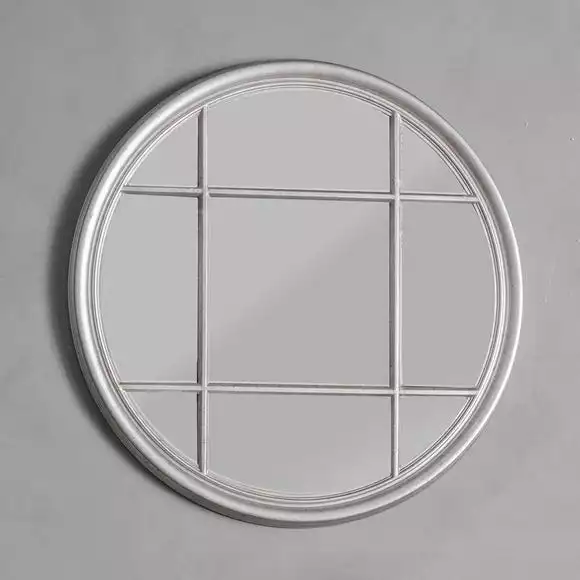 Full of grace, the Ezio round mirror is certain to make for an ideal addition to any home setting. This mirror combines both elegance and industrial décor together by featuring a versatile panelled window mirror, available in a distressed matte cream finish and subtle silver finish. Create more light and space in your home with this ornate mirror.