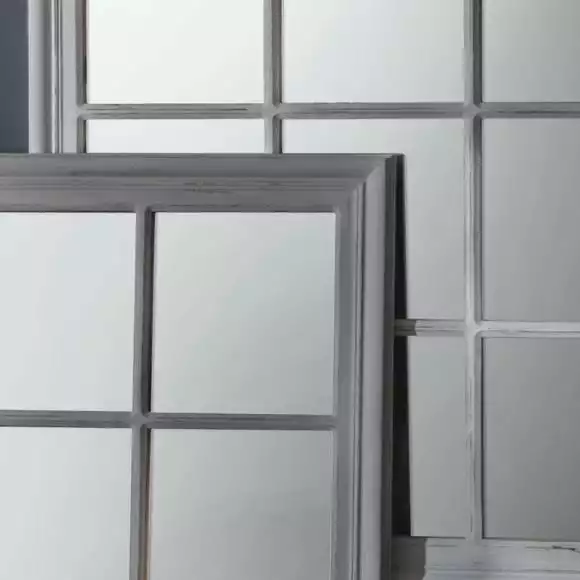 Perfect for adding light to your living space, the Lenox Mirror has a classic rectangle shape, wooden frame and is available in two distressed finishes, grey or antique white.