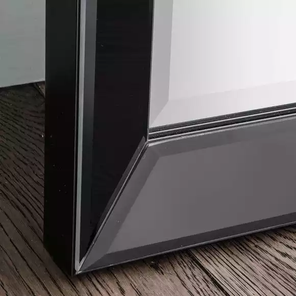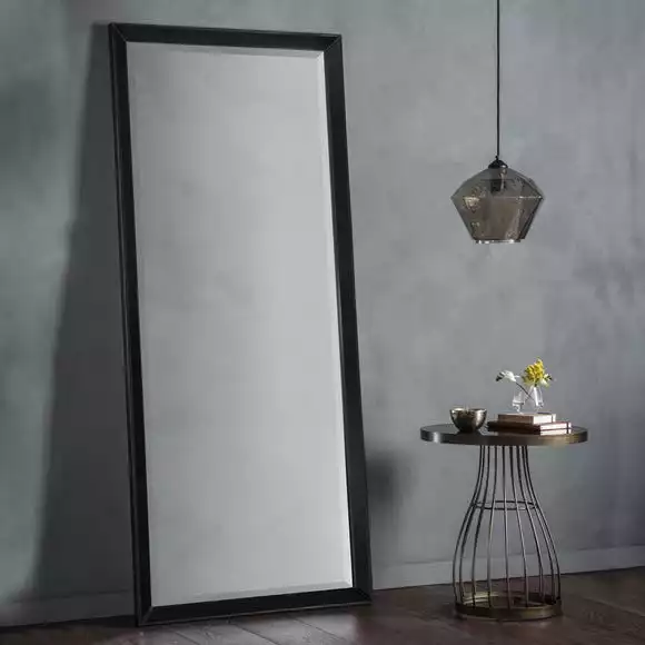 Add this modern full-length mirror to your space for a contemporary addition to your interior. Featuring a black tinted angled mirror frame and bold rectangular structure, the Lyra Leaner Mirror will create style and clarity within your home decors.