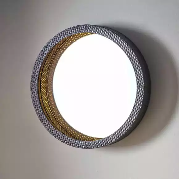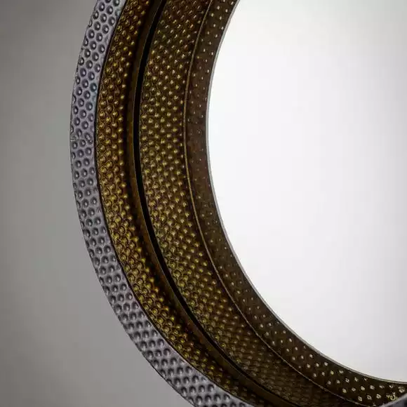 Make a statement in your home with the unique Newton round wall mirror featuring a hammered effect and deep two-toned frame, accented in a bronze and gold finish.