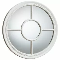 Add a vintage feel to your hallway or living space with this stunning Nikos round mirror. This porthole inspired mirror is framed in a cream-coloured paint with a light crackle textured effect. A gorgeous addition for vintage inspired décors.