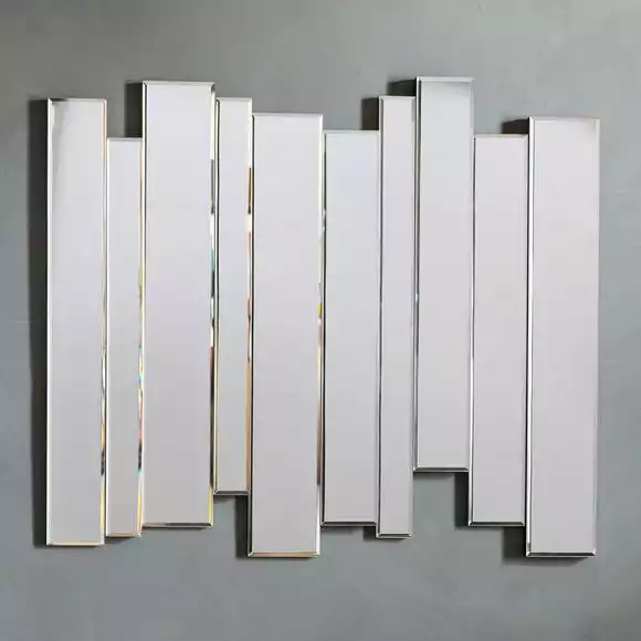 Featuring a statement accent mirror, the Paris wall mirror offers modern glamour with art deco inspiration. This mirror is perfect for adding an eye-catching finishing touch to any room. Designed with silver bevelled mirror glass panels that will perfectly reflect light across the room. This piece can be hung horizontally or vertically to suit your space.