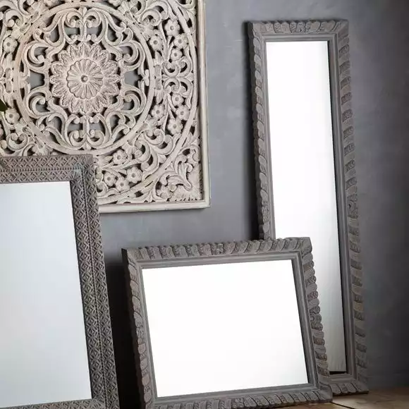 Bring natural themes to your home décor with the Sudley Mirror. Hand crafted with an intricate and repetitive design carved into the frame, a vintage finish is used to further enhance the detail and allows the option to display this mirror as a portrait or landscape. The Sudley mirror is available in other size options for a coordinated look.