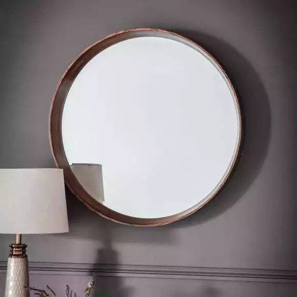 Cedar & Sage Sutton Round Walnut Wall Mirror, 100cm