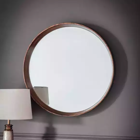 Cedar & Sage Sutton Round Walnut Wall Mirror, 74cm