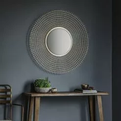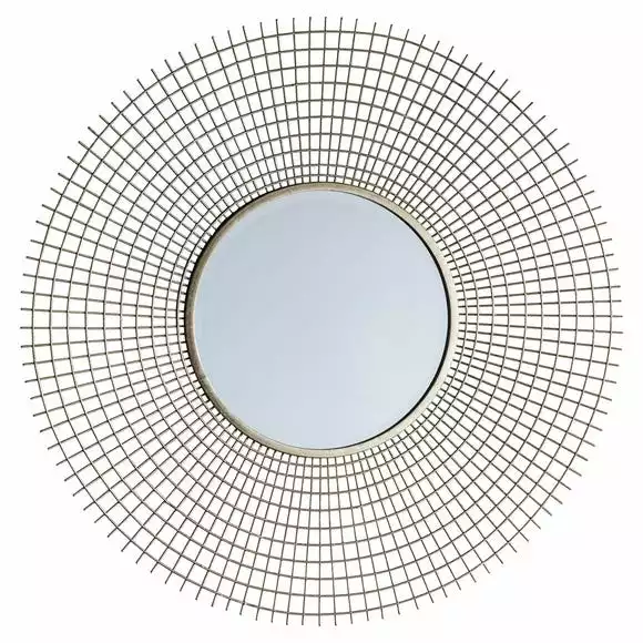 A stylish addition to any home display, the Trafford Wall Mirror is a round statement mirror that features a striking gold wire lattice design made from robust iron and a bevelled centre mirror. This decorative feature mirror will make a great focal point for any wall, while adding light and space to any room.