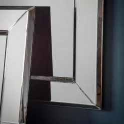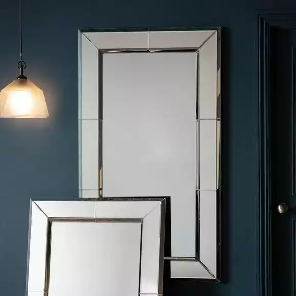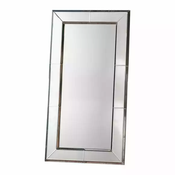 Bringing a sleek and stylish touch to your home the Valenca Leaner Mirror features panels of black and clear glass for transparency and clarity and creates a dramatic look.