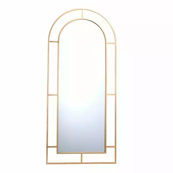 This floor mirror has a beautiful arched window inspired design. Crafted from good quality materials, the metal frame gives this mirror a stylish, on trend design. This mirror is part of a collection and hooks to hang on the wall.