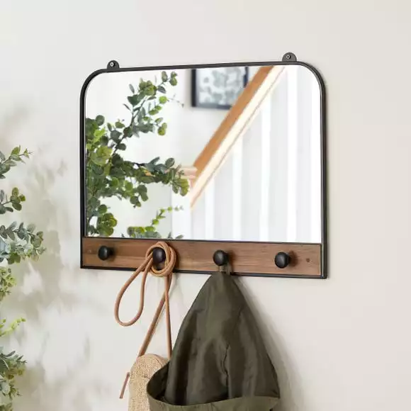 Dunelm Fulton Rectangle Wall Mirror With Hooks, 55x38cm