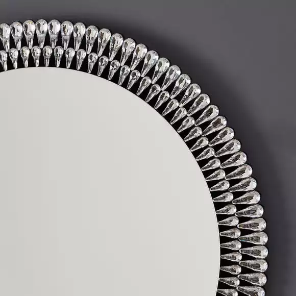 This beautiful mirror would be a stunning statement piece to a range of rooms. Featuring a circular shape with a gorgeous diamond gem edge, this mirror would be perfect for adding a glamorous touch to your home.
