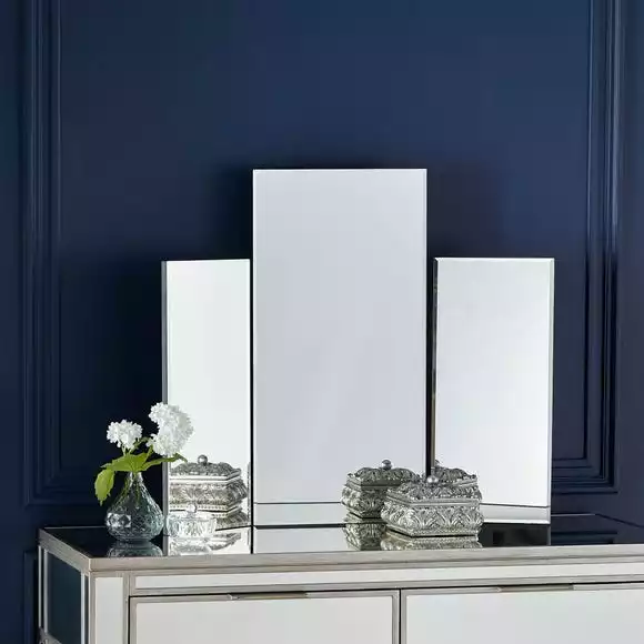 Rejuvenate your dressing table with this contemporary standing mirror, crafted with a set of three mirrors in an elegantly simple design, perfect for providing a modern practical and decorative finish to your bedroom.