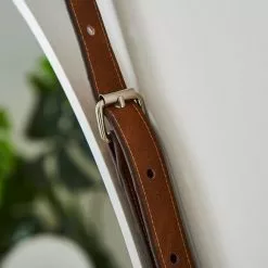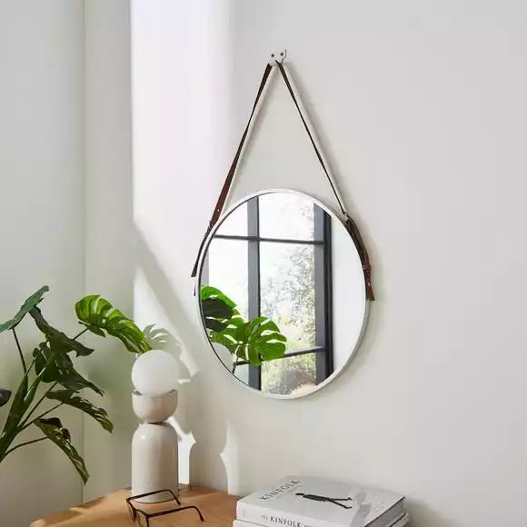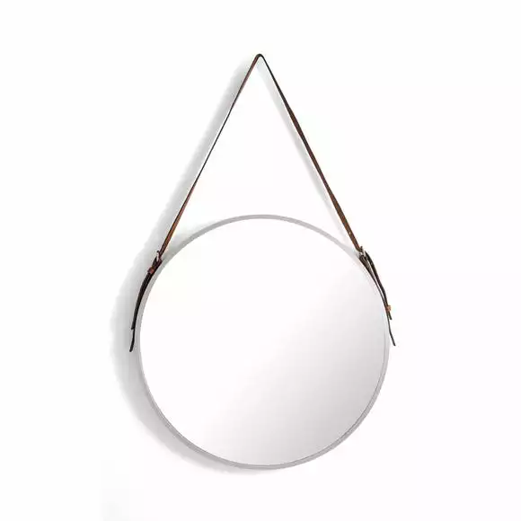 Add a contemporary look to your home with our gorgeous round hanging mirror, detailed with a belt designed hanging loop which you can hang on your wall. This mirror is available in another colour to suit any home interior decor.