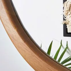 With a contemporary non-standard pebble shape, this mirror will add a modern and contemporary look in your home. The frame has been made from FSC rubber wood which will give this mirror a stylish, on trend design that will make a statement piece in any room. It comes complete with a D-ring hook attached at the back to simply hang on your wall.