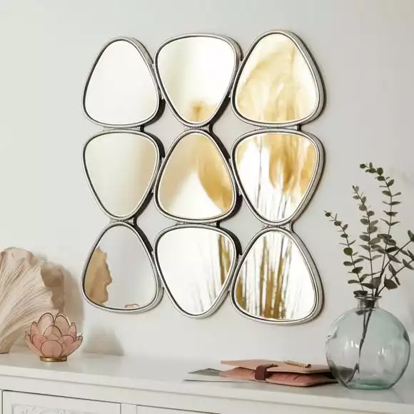 Made with an on-trend stylish design, this stunning pebble mirror will add a touch of style to any room of the house. Designed with 9 pebble shaped mirrors with a gorgeous metallic frame finish. With a hook hanging feature and modern colourway, this mirror will complement an array of decors, whilst standing out as a statement, yet simple piece.