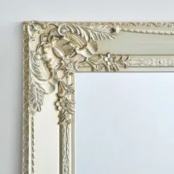 Add a glamorous and on-trend element to your home décor with this beautiful Roma Silver Leaner Mirror. Elegant in its simplicity, this mirror features a wooden frame with a champagne/silver subtle design for a chic and classic appearance that will go perfectly with any home style.