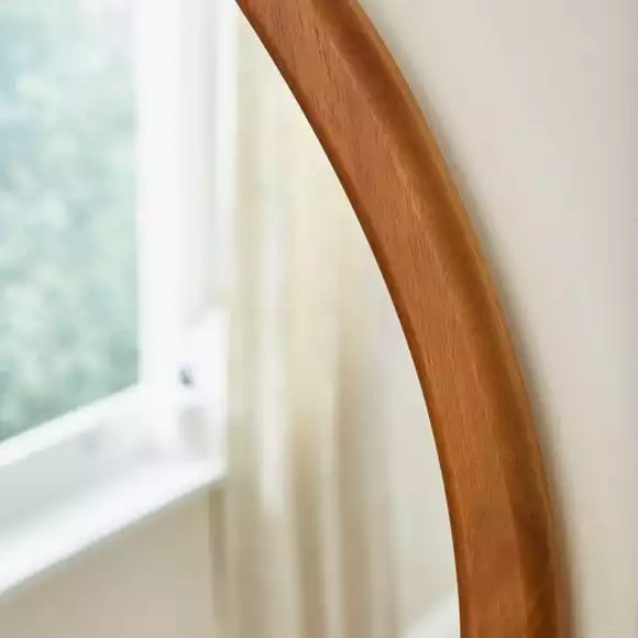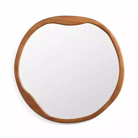 With a contemporary non-standard round pebble shape, this mirror will add a modern and contemporary look in your home. The frame has been made from FSC rubber wood which will give this mirror a stylish, on trend design that will make a statement piece in any room. It comes complete with a D-ring hook attached at the back to simply hang on your wall.