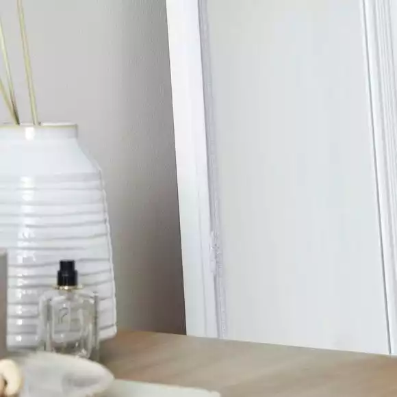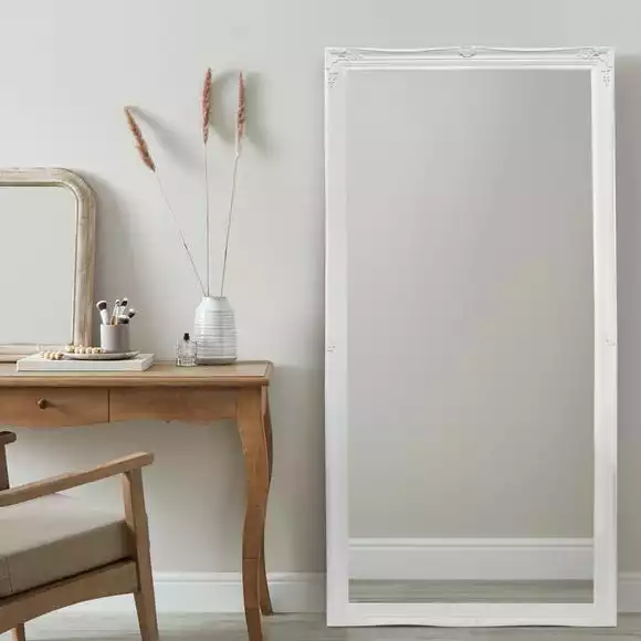 With a white painted finish, this rectangular mirror has a wooden frame and plain mirror, designed with flowers in each corner, to add a stylish touch to any room of the house. Whether displayed on its own, or amongst other wall art pieces and ornaments, this beautiful leaner mirror will look fabulous in your home.