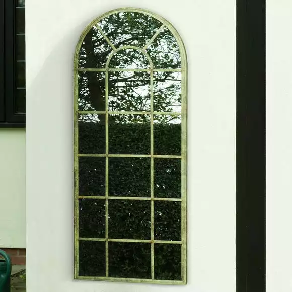 Perfect for adding the wow factor to your garden with this large Tulip Outdoor Mirror. This mirror features frost-protected glass and an iron frame with an antique effect finish for a rustic feel. This mirror includes key-slot fixing brackets on the mirror frame for installation.