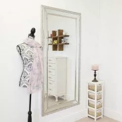Add a touch of elegance with this highly ornate and decorative leaner mirror. Featuring a bevelled all-glass inner frame, is wrapped in a detailed baroque outer frame styled in a silver pewter finish for added sophistication. An opulent statement piece that effortlessly fits into any home decor from traditional to modern. Delivery Note Please Read: This item will be delivered by a specialised mirror and glass courier. You will receive an email notifying you of your estimated delivery date. You will then be advised when the exact delivery date is set. The driver will call 30-60 minutes prior to delivery. Please Note: Standard cord hanging kits are supplied with small wall hanging mirrors. This allows you to hang Wall Mirrors either Landscape or Portrait. Larger mirrors will have metal fasteners on the mirror to allow hanging, however the fixture for the wall is not supplied.
