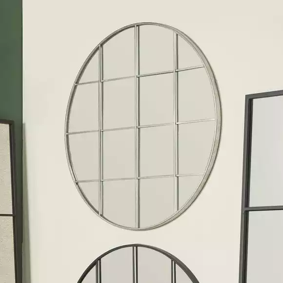 Sleek and sophisticated, the 16 Pane Round Wall Mirror adds detail and decoration to any room. With a durable iron frame and circular shape, this stunning piece creates a window style effect and is versatile enough to display in any room of the house. Available in a bold dark grey or shiny silver finish to suit your personal style.