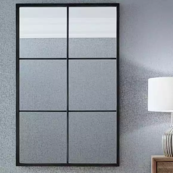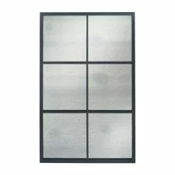 Bold and confident, this 6 Section Rectangular Wall Mirror presents a durable iron frame, a strong rectangular structure and solid matt black finish. Whether displayed alone or amongst other home décor pieces, this mirror will be sure to create a statement and the 6-pane window style feature in a foxed glass effect will add a touch of decadence to your home.