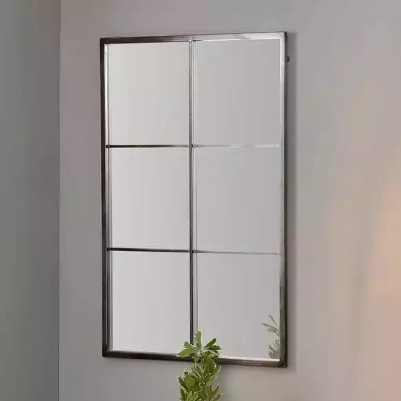 Bold and confident, this 6 Section Rectangular Wall Mirror presents a durable iron frame, a strong rectangular structure with a 6-pane window style design and solid dark grey finish. Whether displayed alone or amongst other home décor pieces, this mirror will be sure to create a statement.