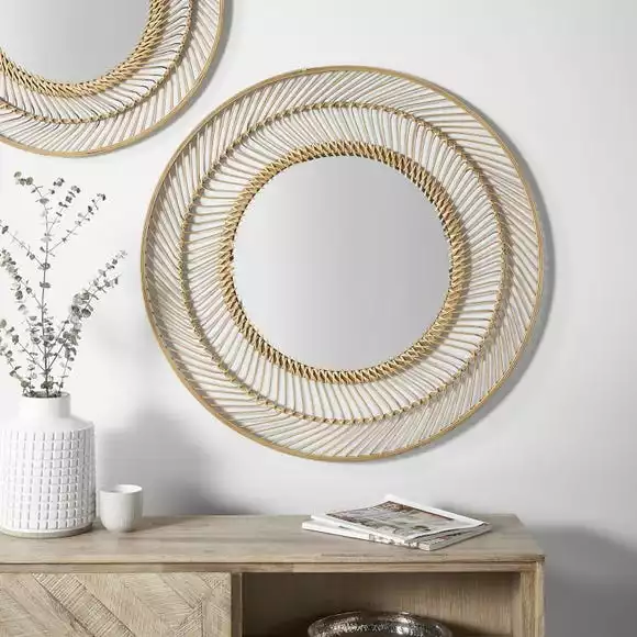 Bring a fresh and natural vibe to your home with the eye-catching Bamboo Large Round Wall Mirror, made from natural bamboo this piece features a stunning and intricate detailed frame. This scandi-inspired design is constructed with a round mirror securely enclosed in the centre and surrounded with hand woven rattan, for a spectacular piece of wall art. Also available in a smaller size, these can be displayed alongside each other or spread apart for a coordinated look.