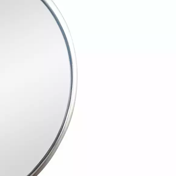 Bring the clean and contemporary looks of this small round wall mirror to your home for a simple but essential home enhancement. The straightforward circular shape and stunning silver frame will sit perfectly in a spare room, small bathroom or utility room.