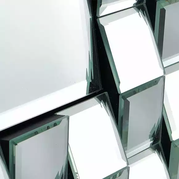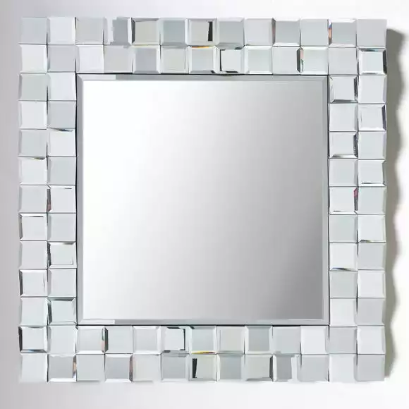 Bring this dazzling mirror to your home for an eye-catching focal point. The Mirrored Glass Tile Wall Mirror comes in a compact square shape and features small glass tile detailing around the frame for an impressive illuminating effect.