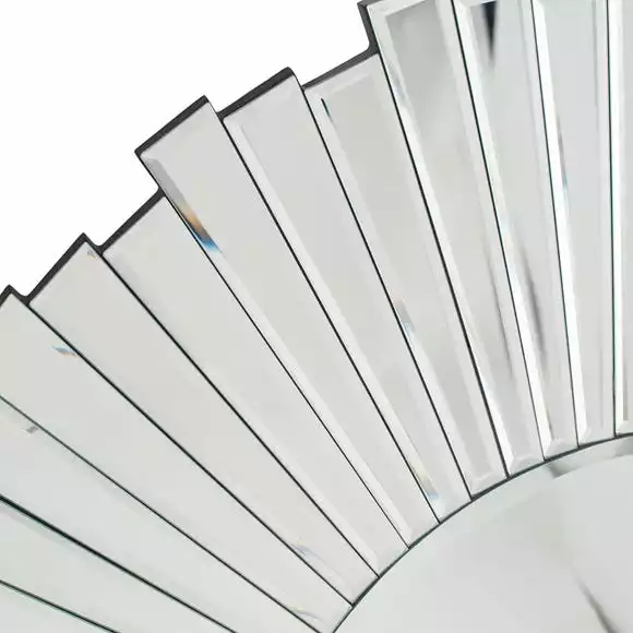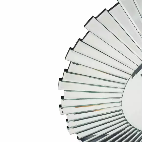 Presenting the unique and striking looks of the Mirrored Glass Starburst Round Wall Mirror, a truly spectacular piece great for creating a statement and adding an elegant touch to your walls. Designed with crisp cut glass edging and overlaying glass details, this stunning sunburst design will complement an array of decorative styles with its outstanding structure and beautiful design.